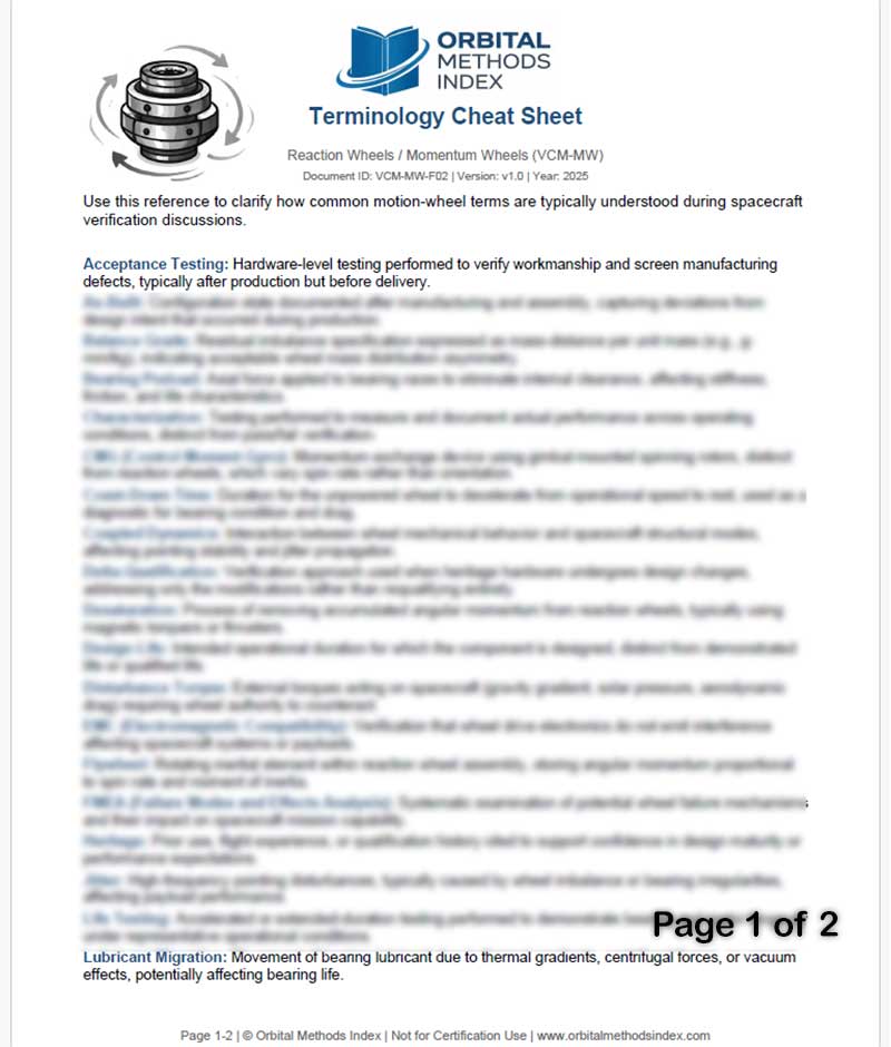 This cheat sheet includes 40 carefully selected terms that routinely influence verification discussions for momentum wheel assemblies: